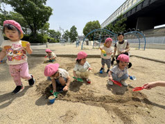 お砂を掘るよ~! どこまでも! お水も流して ドロンコも 楽しみました♪