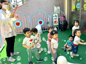 キラキラ⭐︎ ふわふわ❤️ シャボン玉 まてまて♪ 元気いっぱいの みんなです